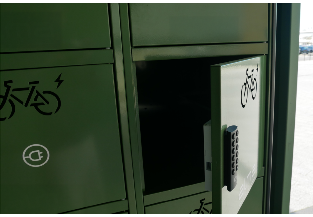 Casiers : afin de déposer ses effets personnels et recharger sa batterie de vélo, des casiers à digicodes intégrant une prise 230V sont à disposition des usagers.